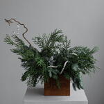 Зимняя композиция в деревянном кашпо из двух сортов хвои, с изысканным украшением Для поднятия новогоднего настроения 🩵