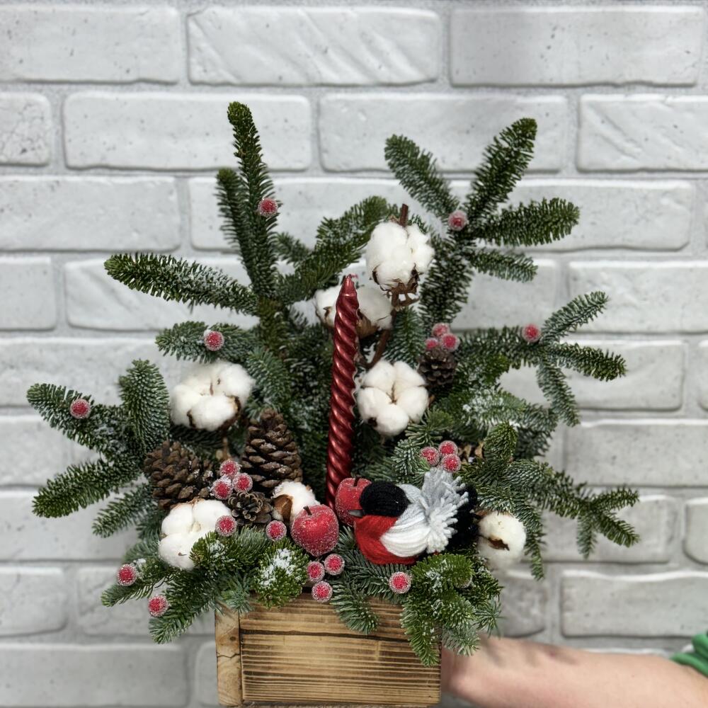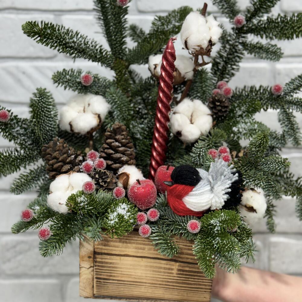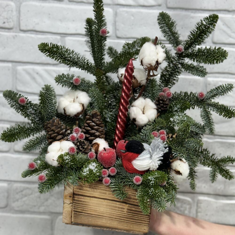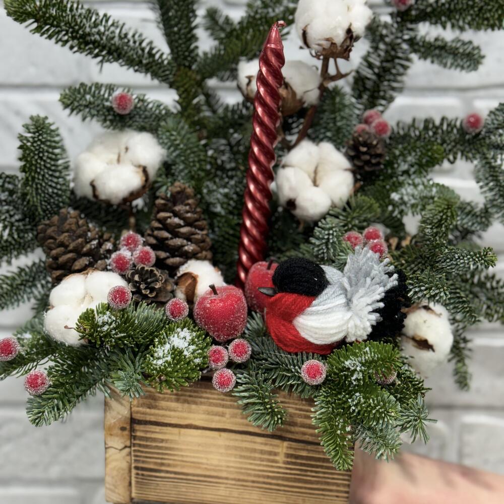 Ящик деревянный Снегирь ручная работа Нобилис Хлопок Яблочки декор Ягода декор Шишка Оазис Свеча