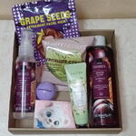 Гель для душа пряная слива250 мл (avon), спрей для тела пряная слива100мл (avon), салфетки для лица, Бурлящее сердце для ванны фисташковое мороженое 100гр, маска для лица grape seeds25гр, крем для рук chamomile 50мл, бальзам для губ romantic bear12гр, подарочная упаковка