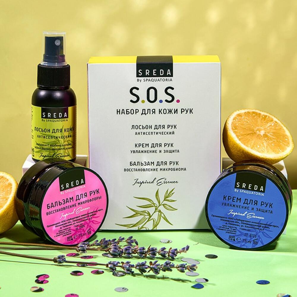 SOS НАБОР ДЛЯ КОЖИ РУК - это идеальная комбинация из трёх натуральных средств, способная обеспечить вашим рукам полноценную защиту и уход. АРОМА ЛОСЬОН 50 мл - антисептический Обеспечивает быструю санацию кожи за счет природных компонентов. Сочетание антимикробных свойств комплекса эфирных масел, растительных экстрактов и изопропилового спирта обеспечивает широкий спектр защиты от болезнетворных бактерий, вирусов и грибов. Увлажняющий комплекс обеспечивает деликатное воздействие лосьона на кожу. Летучие молекулы эфирных масел при вдыхании оказывают дополнительный антимикробный эффект на слизистые носоглотки. КРЕМ ДЛЯ РУК - протеины злаков, алоэ, вербена Природные активные компоненты крема для рук эффективно защищают и увлажняют кожу. Витамин F и ценные растительные масла жожоба, каритэ и виноградной косточки глубоко питают и регенерируют кожу рук, делая ее гладкой и шелковистой. Злаковые протеины и лактат кальция снабжают кожу незаменимыми аминокислотами и микроэлементами, которые восстаналивают ее эластичность и укрепляют ногтевую пластину. Крем защитит нежную кожу рук от преждевременного старения, сохранит их мягкими и ухоженными на долгое время. БАЛЬЗАМ ДЛЯ РУК с постбиотиком для восстановление микробиома кожи Ультрапитательный бальзам с высокой концентрацией натуральных компонентов разработан специально для людей, часто обрабатывающих кожу антисептиками и работающими с агрессивными средами. Насыщает кожу липидами, не оставляя жирной пленки, интенсивно увлажняет, восстанавливает эпидермальный барьер и здоровую микрофлору, успокаивает и защищает очень сухую кожу рук, пострадавшую от воздействия агрессивных сред. Содержит постбиотики, которые способствуют росту полезных микроорганизмов и оздоровлению микробиоты кожи, необходимой для укрепления естественного защитного барьера.