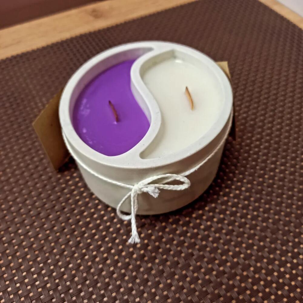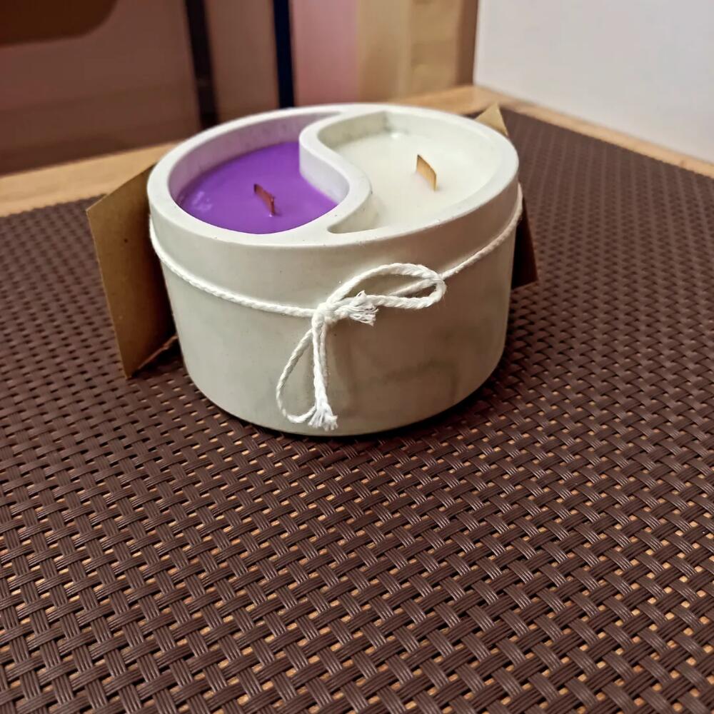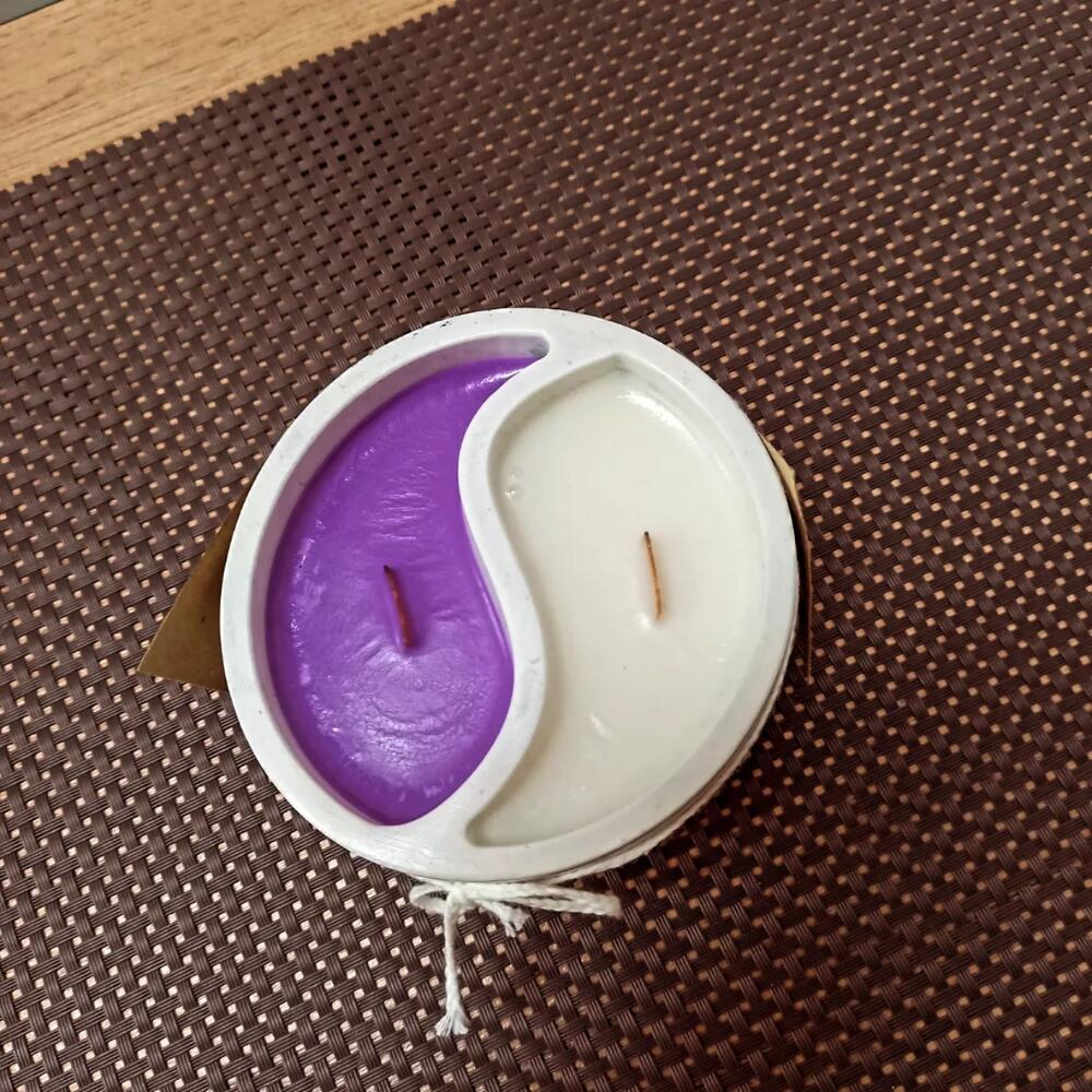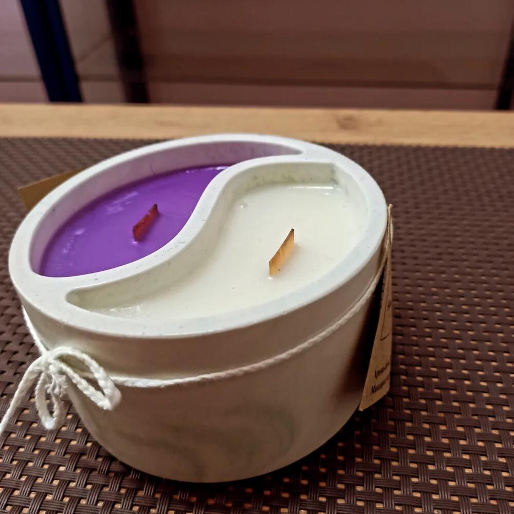 Арома-свеча в гипсовом подсвечнике. Цвет подсвечника светло зелёный мрамор. Ароматы - сирень, пион и роза. Фитиль деревянный. Объём одной свечи 80мл, время горения одной свечи до 15 часов.
