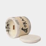Ароматические свечи выполнены Okami из экологически чистых материалов: 1. Гипс - натуральный минерал; 2. Соевый и кокосовый воск - природные материалы, которые при горении не выделяют токсичных веществ; 3. Сертифицированные ароматические масла производства США. На выбор имеются 6 ароматов: 1- Дымный уд - тёплый древесный букет, создающий умиротворенную и загадочную атмосферу. Верхние ноты: ладан, мята Средние ноты: дым Базовые ноты: ладан, мирра, янтарь, мускус и кожа. 2- Красное дерево Ши - аромат роскоши и богатства. Верхние ноты: миндаль Средние ноты: масло ши, кокос, янтарь Базовые ноты: сандаловое дерево, кедр, мускус, тонка, древесина 3- Пряный имбирь - создает атмосферу праздника. Верхние ноты: лимон, апельсин Средние ноты: имбирь, сахар Базовые ноты: ваниль, корица, гвоздика, мускатный орех, душистый перец. 4- Карамельный попкорн - насыщенный сладкий аромат. Верхние ноты: сливочное масло, морская соль Средние ноты: попкорн, кокос Базовые ноты: ваниль, карамель. 5- Ванильное мороженое - сладкий аромат. Верхние ноты: сливочный крем Средние ноты: ваниль, торт Базовые ноты: сахар, бурбон. 6- Жареный кокос - нежный аромат Баунти. Верхние ноты: кокосовое молоко, миндаль Средние ноты: кокос, карамелизированный сахар Базовые ноты: кокосовое молоко, бобы тонка, сливки.