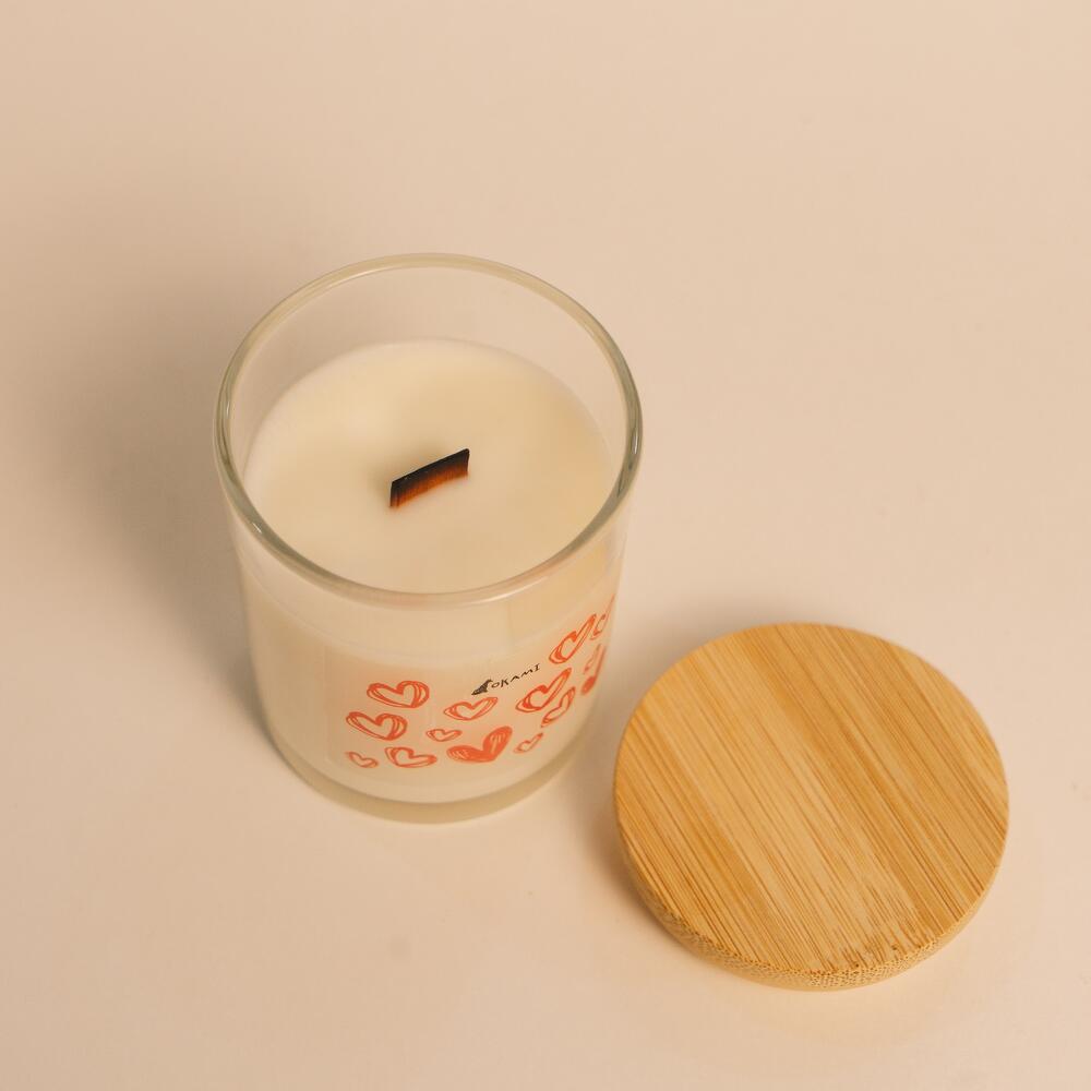 Свеча с посланием, при горении проявляется надпись с признанием. Ароматические свечи выполнены Okami из экологически чистых материалов: Соевый и кокосовый воск - природные материалы, которые при горении не выделяют токсичных веществ; Сертифицированные ароматические масла производства США. На выбор имеются 3 аромата: 1 - Жареный кокос - нежный аромат Баунти. Верхние ноты: кокосовое молоко, миндаль Средние ноты: кокос, карамелизированный сахар Базовые ноты: кокосовое молоко, бобы тонка, сливки. 2- Ванильное мороженое - сладкий аромат. Верхние ноты: сливочный крем Средние ноты: ваниль, торт Базовые ноты: сахар, бурбон. 3- Пряный имбирь - создает атмосферу праздника. Верхние ноты: лимон, апельсин Средние ноты: имбирь, сахар Базовые ноты: ваниль, корица, гвоздика, мускатный орех, душистый перец.