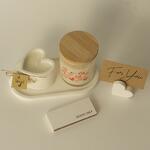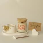 В составе подарочной коробки - две ароматические свечи (150 мл и 60 мл), подставка, держатель для фото, спички и декоративная упаковка с открыткой. Ароматическая свеча с посланием. При горении проявляется текст с признанием в любви :). Текст может попасться в разных вариациях: я тебя люблю, люблю, или i love you, love you. На выбор имеются 3 аромата: Пряный имбирь - создает атмосферу праздника. Верхние ноты: лимон, апельсин Средние ноты: имбирь, сахар Базовые ноты: ваниль, корица, гвоздика, мускатный орех, душистый перец. Ванильное мороженое - сладкий аромат. Верхние ноты: сливочный крем Средние ноты: ваниль, торт Базовые ноты: сахар, бурбон. Жареный кокос - нежный аромат Баунти. Верхние ноты: кокосовое молоко, миндаль Средние ноты: кокос, карамелизированный сахар Базовые ноты: кокосовое молоко, бобы тонка, сливки.