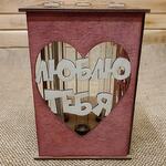 Декоративный бокс с колбами из стекла - это уникальное украшение для любого интерьера. Изготовленный из натуральной берёзовой фанеры, он придаст вашему дому особый шарм и уют. Колбы предназначены для размещения в них живых цветов или сухоцветов, создавая при этом неповторимую атмосферу свежести и красоты. Особенностью этого декоративного бокса является его оформление - вырезанное в стенках сердце, внутри которого вырезаны слова люблю тебя. Этот романтичный акцент делает этот предмет не просто декором, но и знаком искренних чувств и нежности. Этот бокс станет прекрасным подарком для любимого человека или родного человека, напоминая о любви и заботе каждый день. Бокс с колбами и сердцем люблю тебя станет не только стильным дополнением к вашему интерьеру, но и источником вдохновения и радости. Позвольте этому декоративному боксу наполнить ваш дом теплом и уютом, напоминая о важности гармонии и взаимопонимания в жизни. Стеклянные лабораторные колбы входят в комплект. Изделие выполнено только из экологичных материалов, и окрашено натуральными пропитками. Количество колб: 5 штук. Размер (Ш * Г * В): 10 * 10 * 15 см Размер колб: 16 * 150 мм