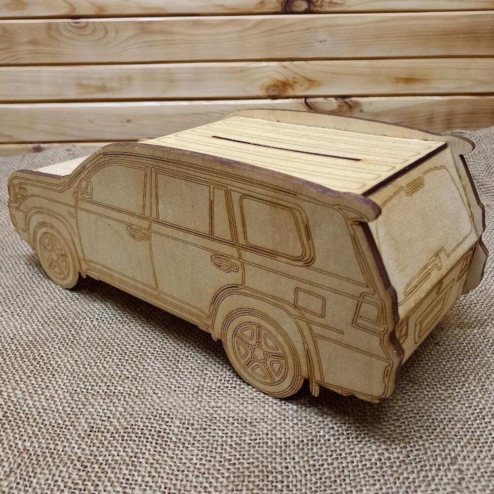 Копилка в форме внедорожника с лазерной гравировкой — это стильный и оригинальный способ сохранения сбережений. Изготовлена из высококачественной берёзовой фанеры, она обладает прочной конструкцией, сохраняя при этом естественную текстуру дерева. Этот материал придает копилке натуральный и экологически чистый вид, что делает ее привлекательным элементом интерьера. Открытие копилки осуществляется снизу, что обеспечивает удобный доступ к накопленным средствам без необходимости ее разбирать. Это позволяет легко извлекать деньги или добавлять новые монеты и купюры без особых усилий. Копилка в форме внедорожника является не только практичным средством для накопления сбережений, но и стильным элементом декора. Она может служить как дополнительным акцентом в интерьере, так и оригинальным подарком для друзей или близких. Такой предмет обладает универсальностью, подходя как для детской комнаты, так и для рабочего кабинета или гостиной, добавляя в них нотку индивидуальности и уюта. Изделие выполнено только из экологичных материалов. Внешний размер (Ш * Г * В): 25 * 10 * 25 см