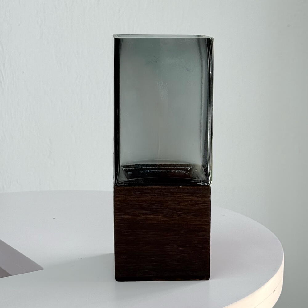 Уникальная ваза, сочетающая прозрачность стекла и натуральную текстуру дерева. Деревянный элемент служит стильной опорой и подчёркивает природный характер изделия, идеально подходящего для современных и эко-интерьеров.