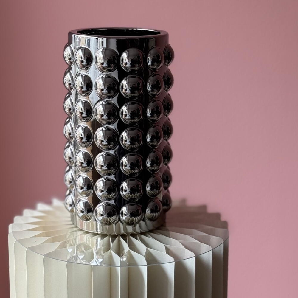 Материал- стекло. Серебряного цвета ваза с круглыми ребрами по всей площади. Подчеркнет любой букет в моно варианте или сборный авторский. Крепкая и яркая ваза подойдет для любого интерьера и станет классным дополнением к подарку, так и самостоятельным подарком🤍