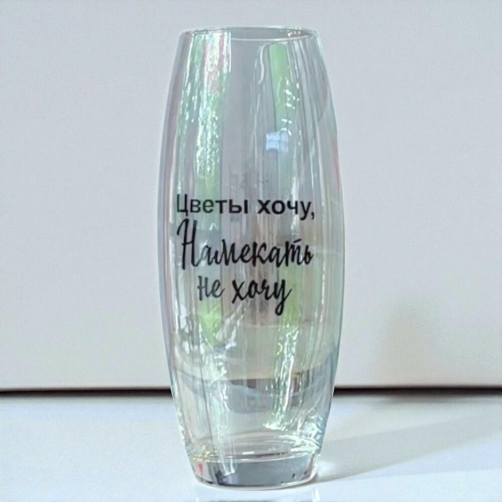 Стильная прозрачная ваза с забавной надписью: «Цветы хочу, намекать не хочу» — отличный подарок для тех, кто любит лёгкий юмор и оригинальные детали интерьера. Такая ваза станет акцентом на кухне, в гостиной или офисе, привлекая внимание и вызывая улыбку. Прекрасно подойдёт как для свежих цветов, так и для декоративных композиций. Изготовлена из прочного прозрачного стекла с ровными краями. Лёгкий уход: достаточно мыть тёплой водой с мягким моющим средством, избегая абразивных губок. Дарите позитив и внимание без лишних слов!
