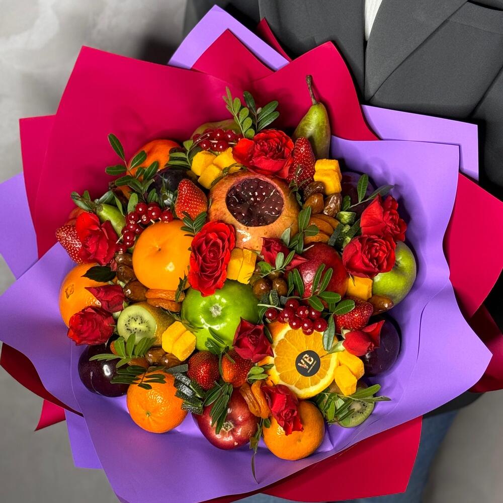 Шикарный фруктовый букет дополненный сухофруктами и ягодами.