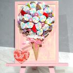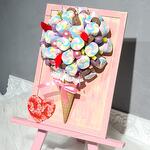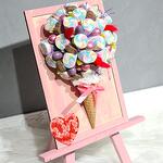 Оригинальный букет выполненный на мольберте Диаметр шара 15 см. Маршмеллоу, шоколад и мармелад для любителей сладкого! Композицию можно собрать на белом холсте.