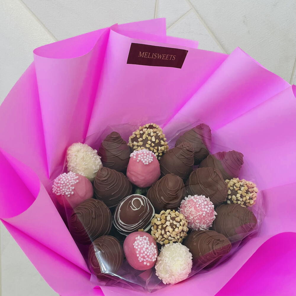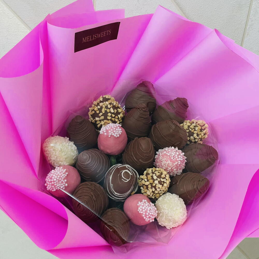 В букете 21 штук клубники в бельгийском шоколаде