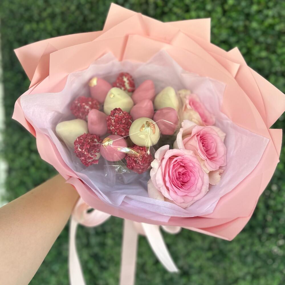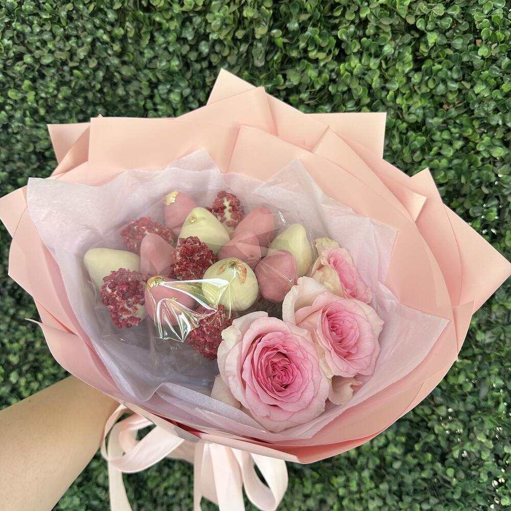 Букет из клубники с цветами В нежнейшем бельгийском шоколаде