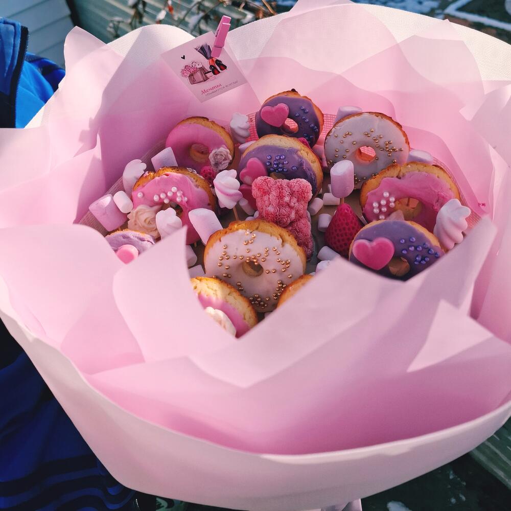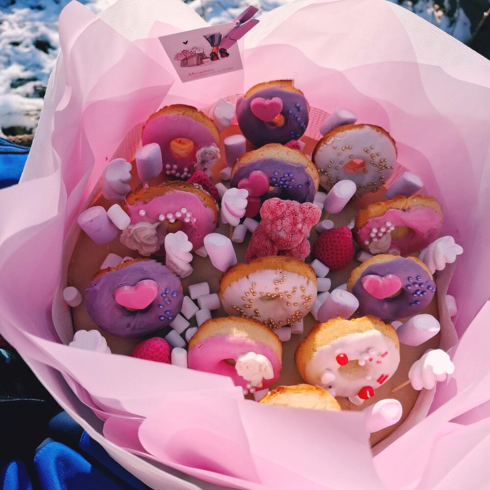 Букет из нежных пончиков в шоколадной глазури. Тают во рту.