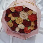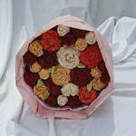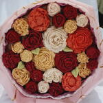 Букет отличный, но сделали его большего диаметра при том же наполнении, из-за чего между фигурками есть много свободного пространства