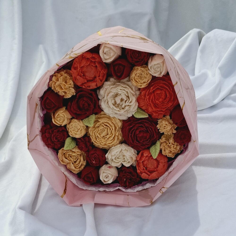 Букет зефирных цветов микс пионы тюльпаны. Со вкусом черная смородина, кокос, малина.