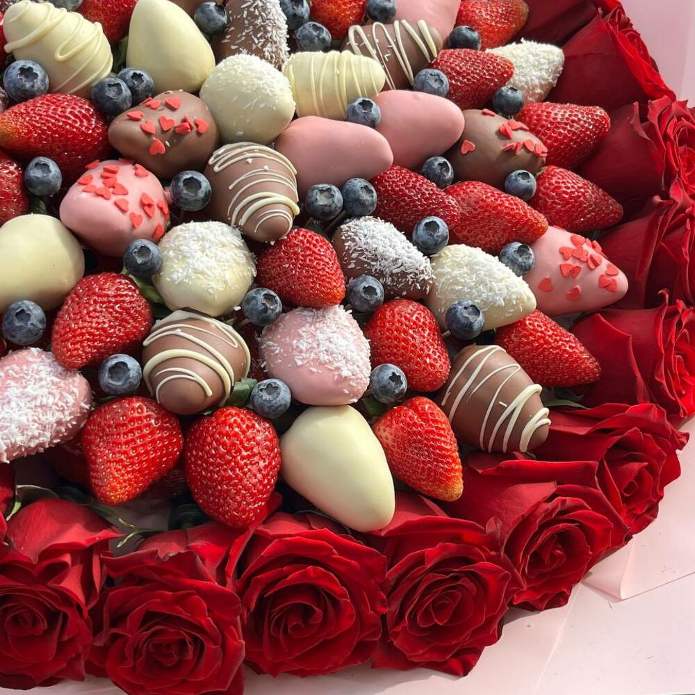 Клубника - 20 шт. Голубика - 25 шт. розы - 25 шт. клубника в бельгийском шоколаде callebaut - 40 шт.