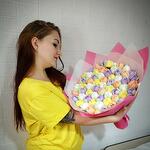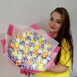 Количество цветов в букете примерно 50-55 штук. 4 вкуса зефира: банан, манго, черная смородина, яблоко-ваниль.