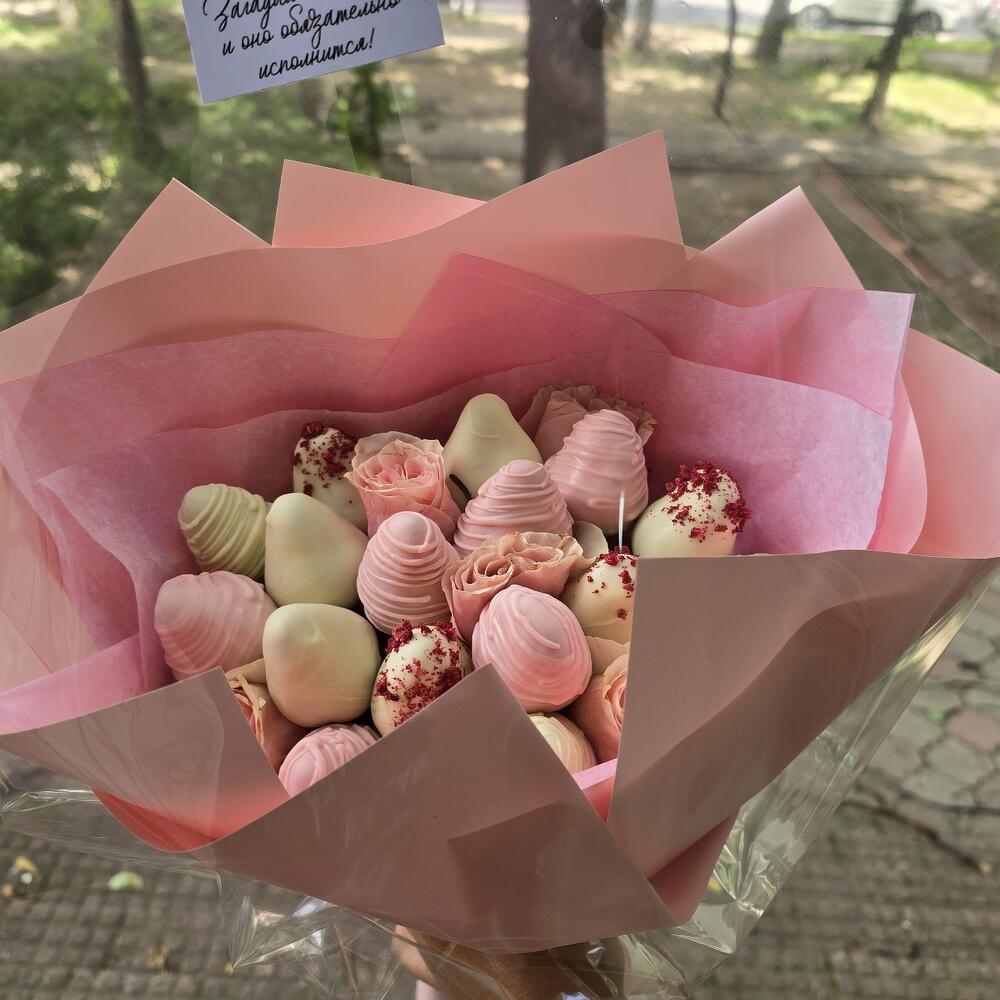Клубника в шоколаде - 15 шт. розы - 7 шт.