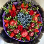Клубника - 10 шт. Гранат - 1 шт. Слива - 5 шт. Голубика - 20 шт. розы - 3 шт. Яблоки - 4 шт.