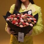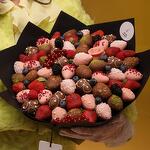 Шоколад ручной работы - 1 шт. свежая клубника - 15 шт. свежая малина - 45 гр. свежая голубика - 45 гр. свежая ежевика - 45 гр. свежая ветка красной смородины - 1 шт. клубника в молочном и розовом шоколаде - 40 шт.