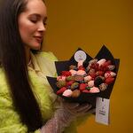 Шоколад ручной работы - 1 шт. свежая клубника - 8 шт. свежая малина - 45 гр. свежая голубика - 45 гр. свежая ежевика - 45 гр. свежая ветка красной смородины - 1 шт. клубника в молочном и розовом шоколаде - 22 шт.