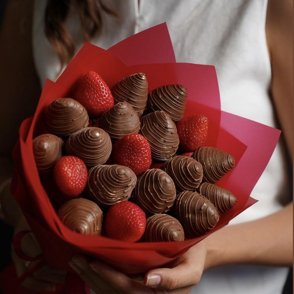 свежая клубника - 5 шт. клубника в бельгийском шоколаде - 15 шт.
