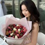 Собранный вручную ягодный букет в переносной упаковке. В составе свежая клубника, ягоды голубики и клубника в бельгийском шоколаде Callebaut с декором. Стильный и вкусный подарок для любого случая.