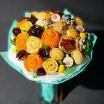 Шикарный букет к чаю! Розы из 2х видов Манго и пастилы, нежные, рассыпчатые тарталетки из песочного теста с разными начинками, драже и ароматные конфеты! Дополняют букет киви и помело! Этот букет покорит сердца! Остаётся заварить ароматный чай и наслаждаться душевными беседами в кругу близких! Приятного чаепития!