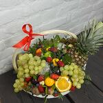 Клубника - 10 шт. Ананас - 1 шт. Виноград - 300 гр. Банан - 6 шт. Гранат - 1 шт. Киви - 2 шт. Яблоко - 3 шт. Мандарин - 5 шт. Груша - 2 шт. Слива - 4 шт. Питахайя - 1 шт. Голубика 100гр - 1 шт.