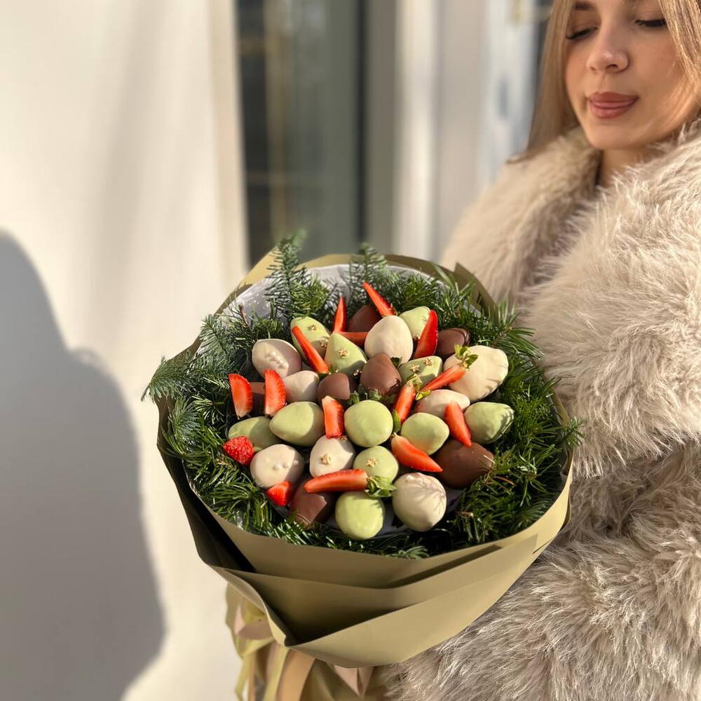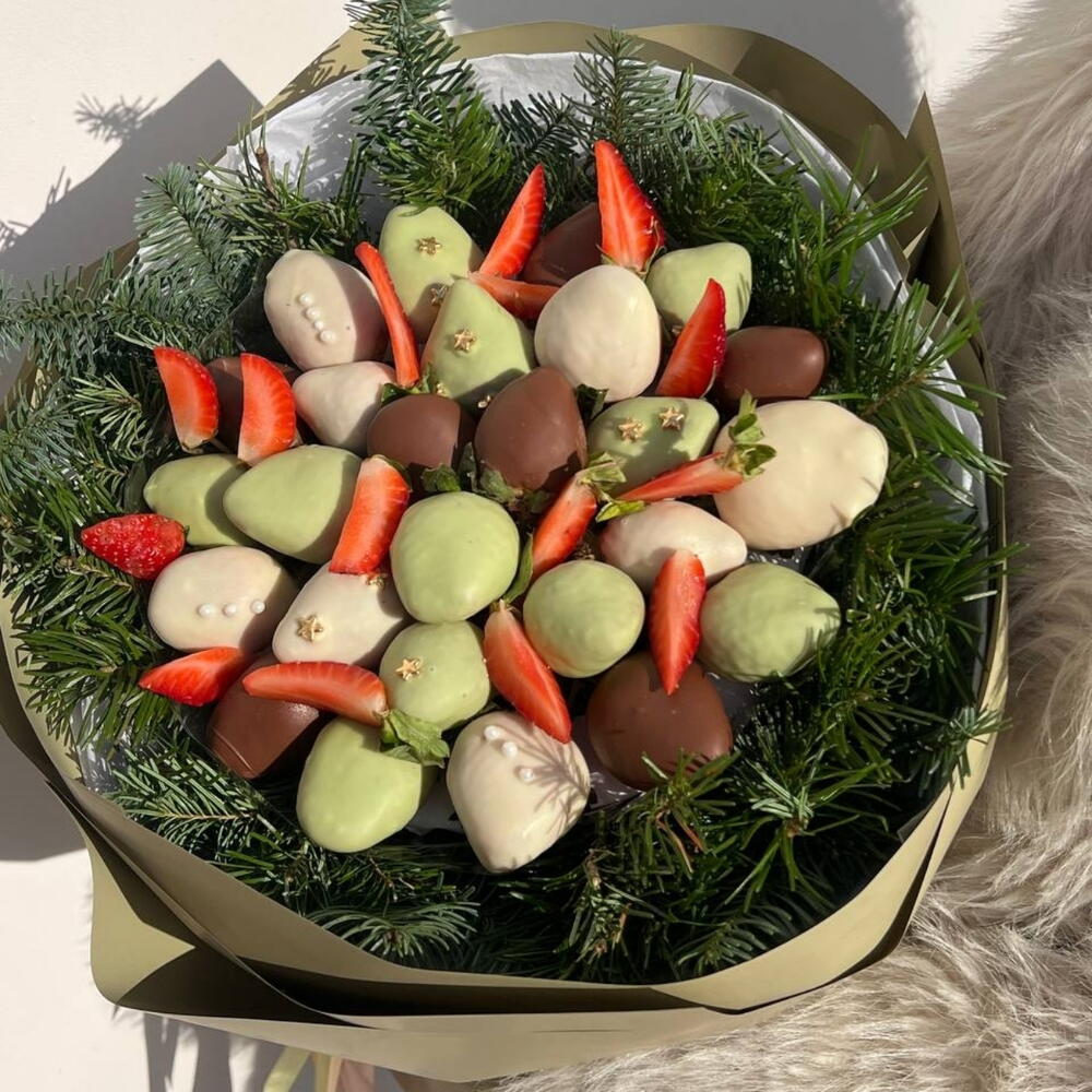 Клубника в шоколаде - 1200 гр. ветки нобилиса (живая ель) - 3 шт.