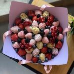 Клубничный букет в сиреневом оформление