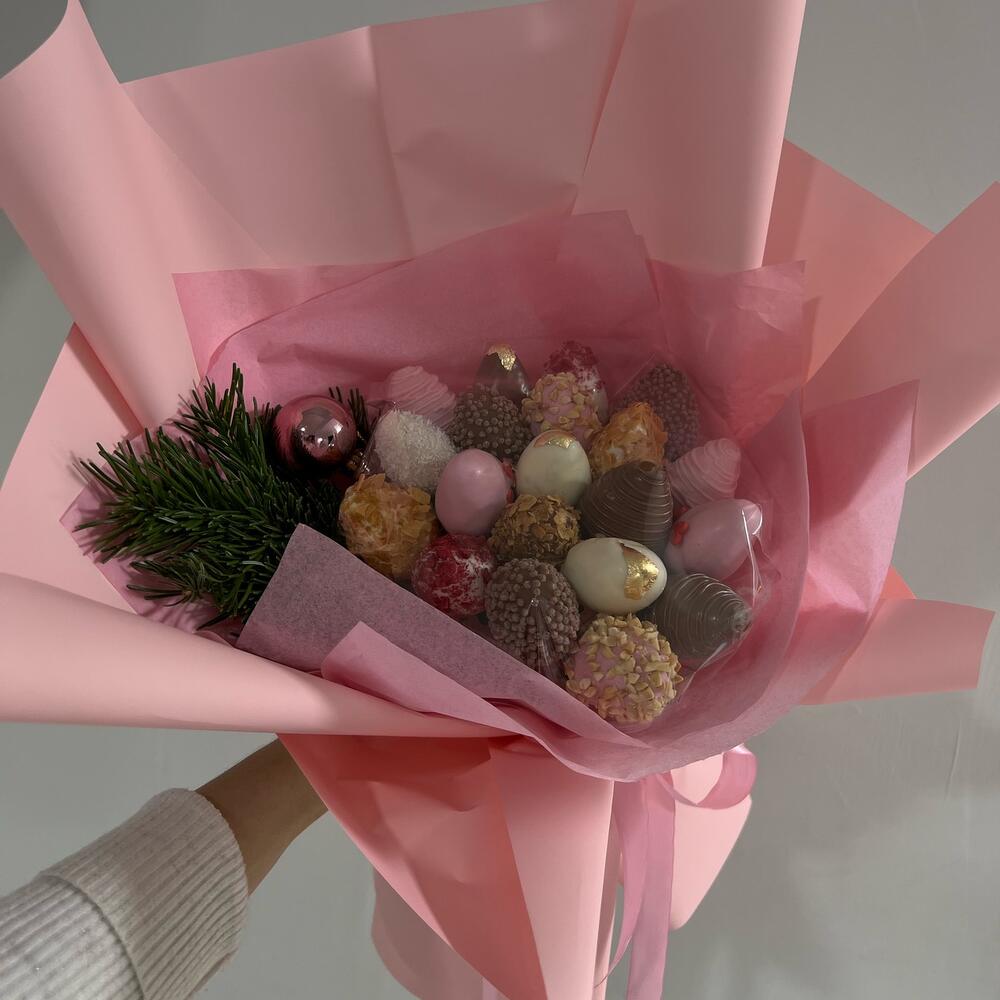 Клубника в шоколаде - 20 шт. Пихта живая - 1 шт. елочный игрушка - 1 шт.