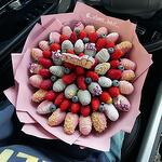 Клубника - 800 гр. Голубика - 70 гр. Шоколадные буквы - 1 шт. Клубника в шоколаде - 1000 гр.
