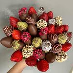 Турецкая клубника в молочном бельгийском шоколаде с дробленным арахисом и сублимированной малиной