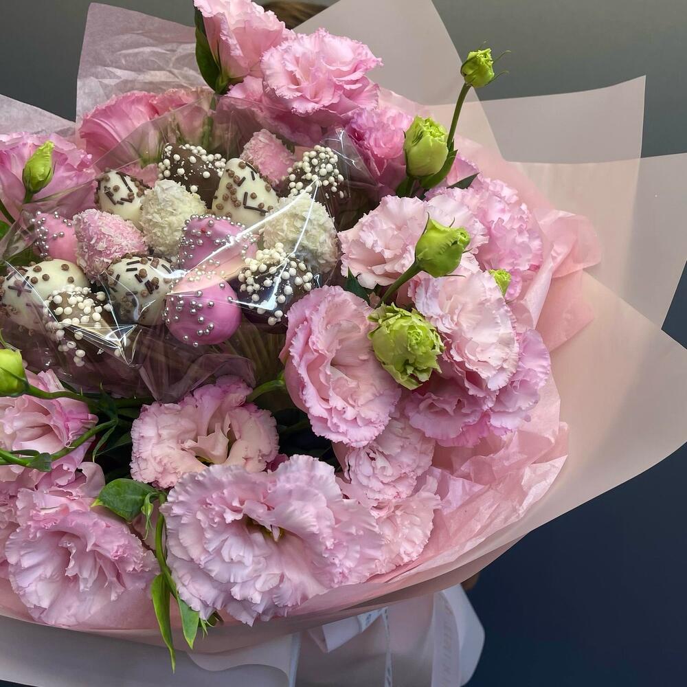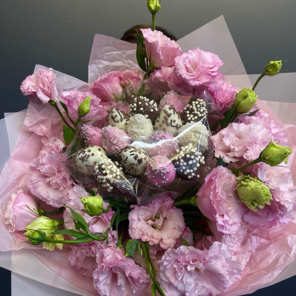 Лизиантус - 7 шт. Упаковка дизайнерская - 4 шт. Клубника в шоколаде - 15 шт.