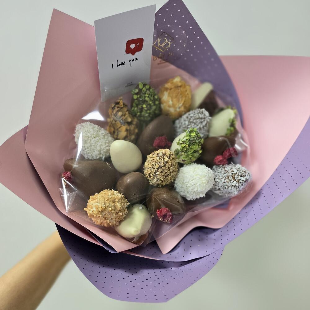 Клубника в шоколаде, с разными посыпками: фисташка, сублимированная малина, вафельная крошка, кокос