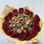 Клубника в шоколаде - 15 шт. розы - 15 шт.