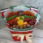 Упаковка - 3 шт. Киви - 11 шт. Сок гранатовый - 1 шт. Вишня - 10 шт. Курага - 16 шт. Финики - 17 шт. Манго сушеный - 3 шт. макадамия в скорлупе - 7 шт. пастила фруктовая - 3 шт.