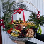 Большая новогодняя корзина с вкусными и свежими сухофруктами, украшения новогодним декором, большая и тяжёлая корзина размер L, точно не оставит ни кого равнодушными