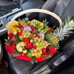 Клубника - 10 шт. Ананас - 1 шт. Киви - 2 шт. Апельсин - 2 шт. Мандарин - 5 шт. Груша - 1 шт. Голубика - 10 шт. манго - 1 шт. Авокадо - 1 шт. Ferrero rocher - 5 шт. Смородина - 2 шт. Питахайя - 1 шт. Виноград гроздь - 2 шт. гранат красный - 1 шт. бананы - 6 шт. Яблоки - 3 шт.