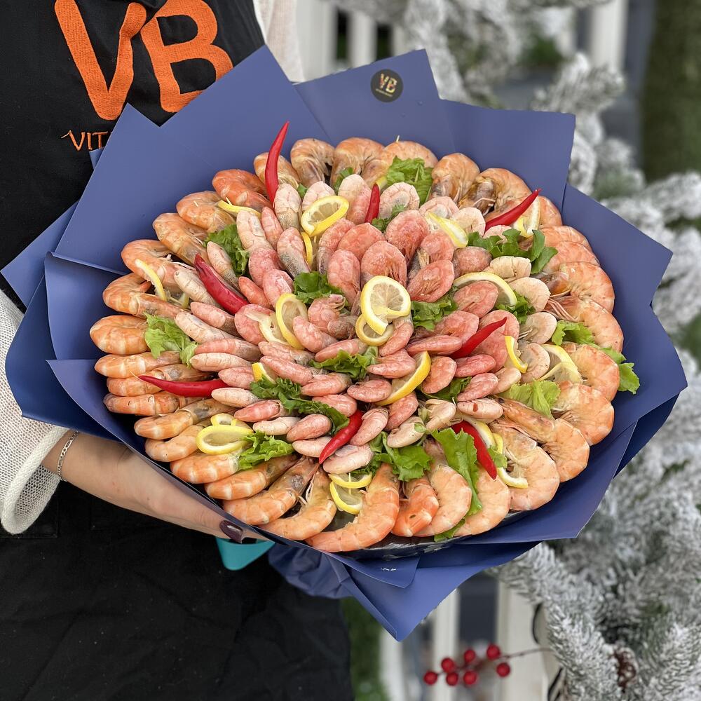 Шикарный букет,из двух видов креветок 🦐🍤 Украшенный сочным лимоном и перцем Чили 🌶️ Покорит сердце любого😍