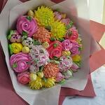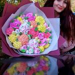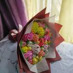 Букет из зефира микс цветы состоит из разных вкусов зефира. Манго, банан, яблоко-ваниль, малина. Гортензия, розы, хризантемы, тюльпаны.