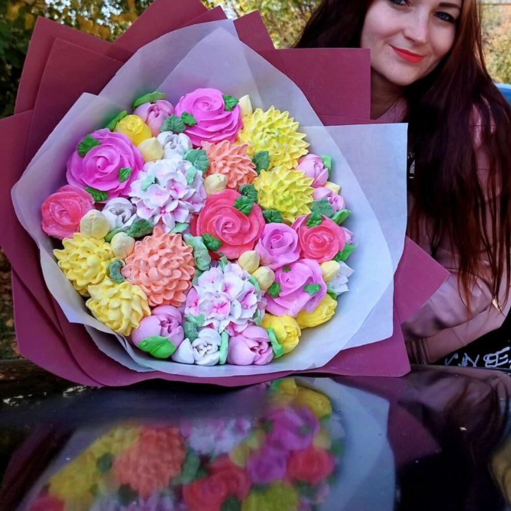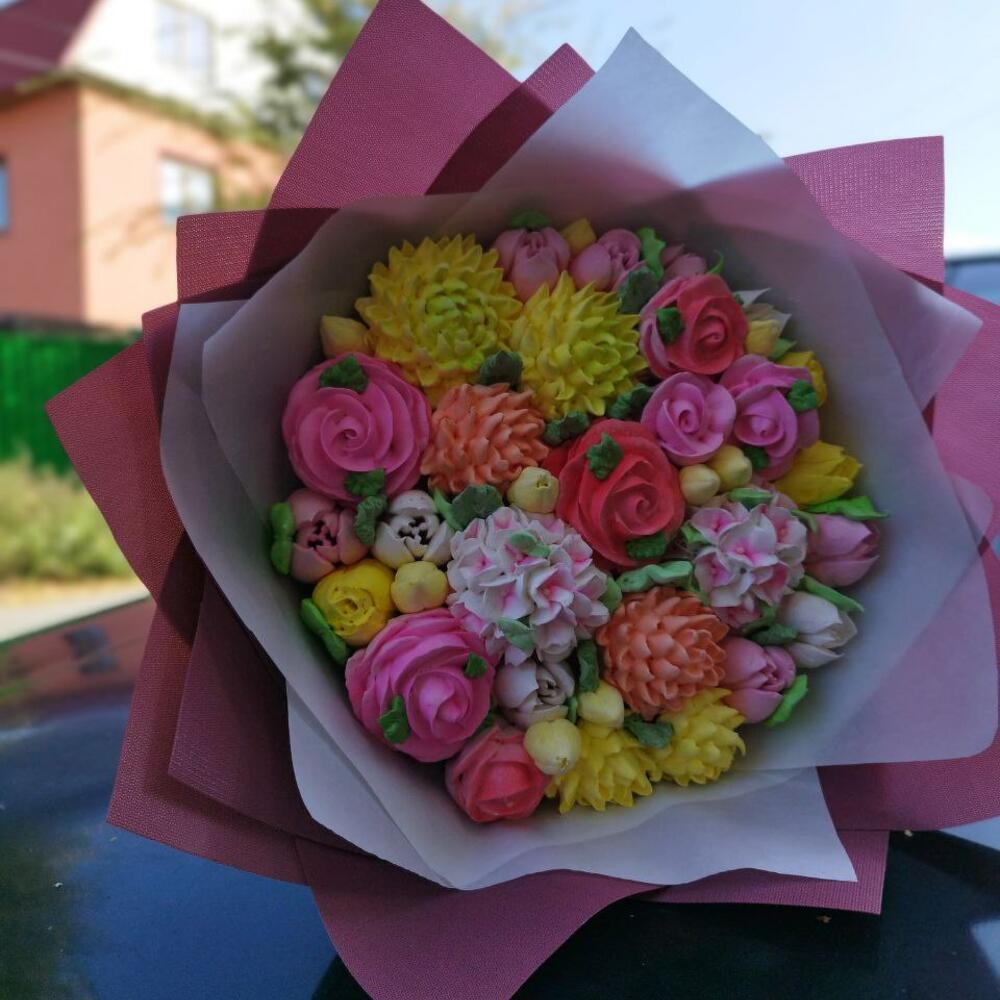 Букет из зефира микс цветы состоит из разных вкусов зефира. Манго, банан, яблоко-ваниль, малина. Гортензия, розы, хризантемы, тюльпаны.