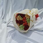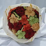Букет отличный, но сделали его большего диаметра при том же наполнении, из-за чего между фигурками есть много свободного пространства