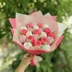 Мини букет из зефирных тюльпанов, со вкусом клубники и яблоко-ваниль.