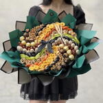 Брутальный и полезный букет из отборных сухофруктов - всё, что нужно для бодрости, силы и отличного настроения. Ассорти из кураги, инжира, фиников, чернослива, орехов в стильной подаче - отличный подарок для мужчины, который ценит вкус, практичность и заботу о себе. 🎁 Подходит для дня рождения, юбилея, профессионального праздника или просто без повода. Собрано вручную и упаковано с вниманием к деталям.