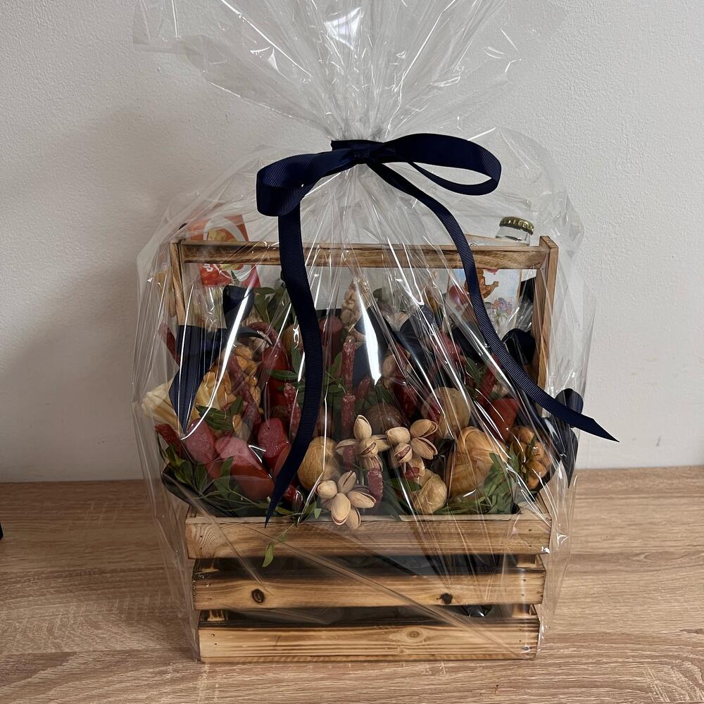 Грецкий орех - 5 шт. Кириешки - 3 шт. Фисташка пучок - 1 шт. Фисташки соленые - 2 шт. Сосиски копченые - 200 гр. макадамия - 10 шт. соленый арахис - 3 шт. чечил косичка - 2 шт. арахис в оболочке - 2 шт. мясные снеки (упаковка) - 1 шт. лимонад буратино - 1 шт.