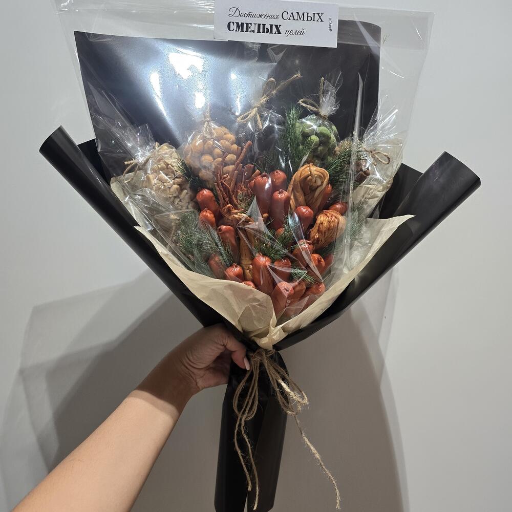 Упаковка - 3 шт. Укроп - 1 шт. сосиски охотничьи - 200 гр. чечил косичка - 2 шт. арахис в оболочке - 5 шт.