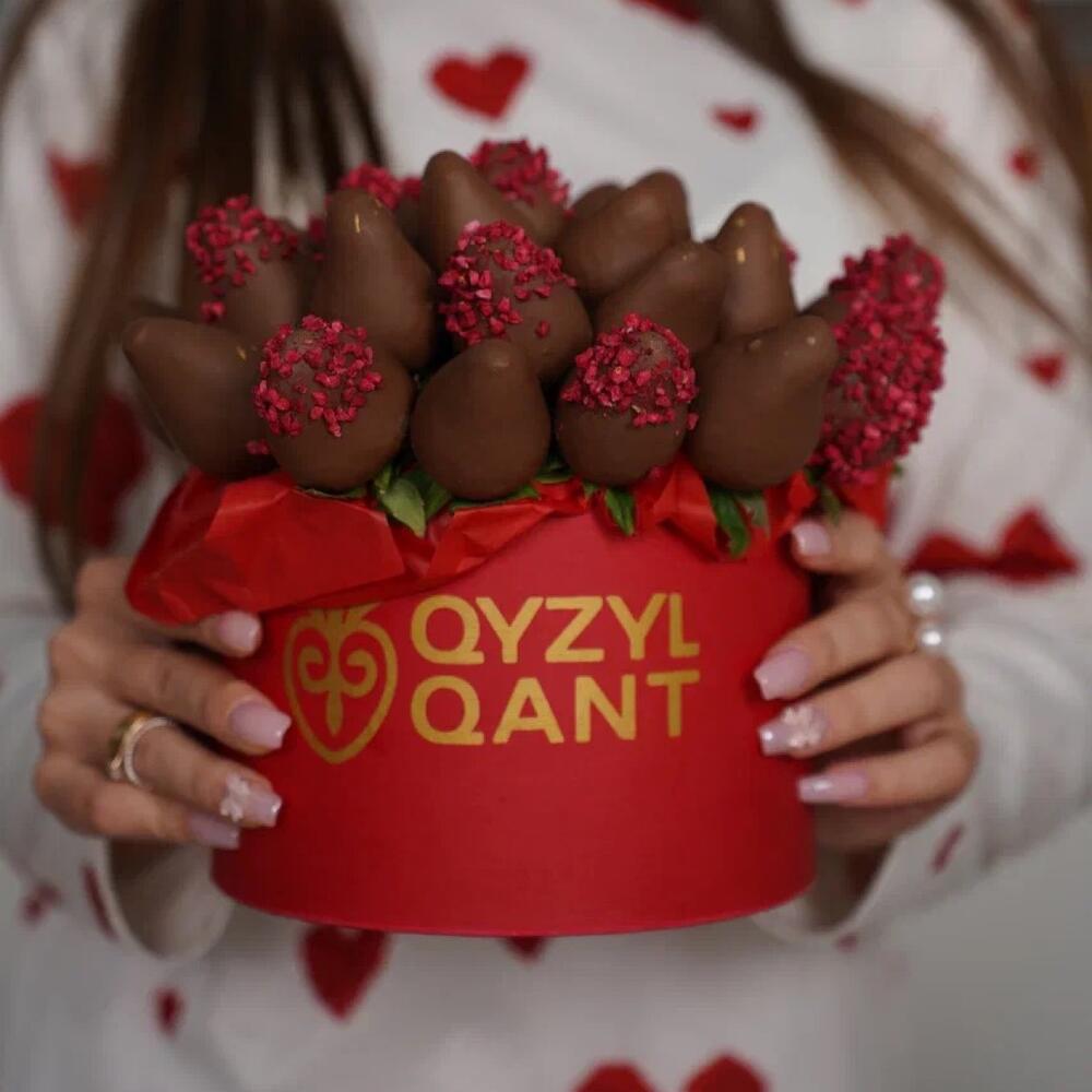 Коробка шляпная - 1 шт. клубника в бельгийском молочном шоколаде - 35 шт.
